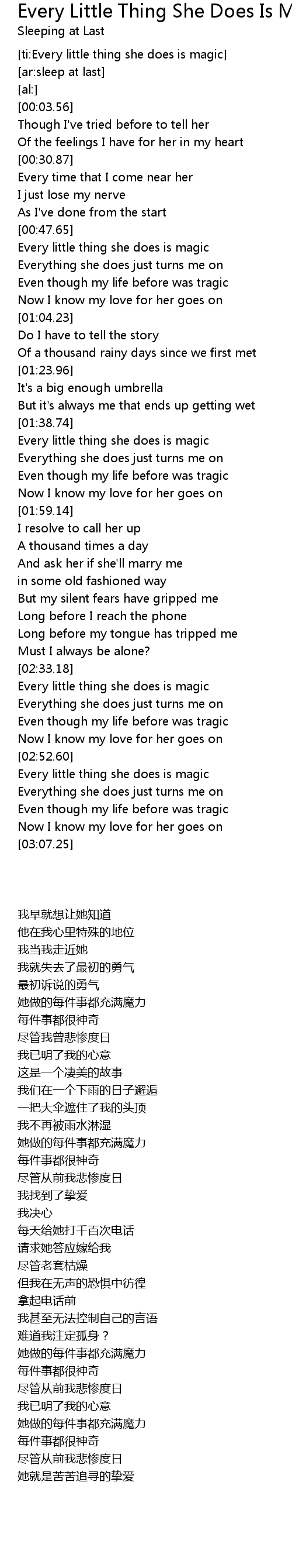 Si te ha gustado mi traducción, ¡SUSCRIBETE y da LIKE! :) me ayudaría a seguir subiendo más contenido. ✨ THE POLICE . Every Little Thing She Does Is Magic Lyrics are a topic that is being searched for and appreciated by netizens nowadays. You can Download the Every Little Thing She Does Is Magic Lyrics here. Download all royalty-free pix. Every little thing she does is magic - Sleeping at last (lyrics), Deixem ideias de músicas e deem uma olhada nas outras postadas..